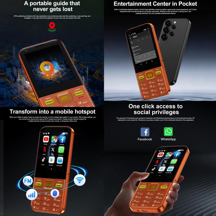 4. Features: Large buttons, one-touch flashlight on the side, BT, WiFi, FM, MP3, MP4, it has Wi-Fi and hotspot capabilities, and supports downloads (however, not all apps compatible with Android 8.1 can be downloaded due to system limitations).