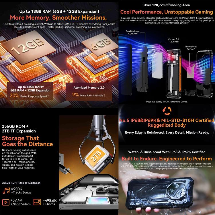 Blackview FORT 1, 6GB+256GB, 6.56 inch Android 15 Unisoc UMS9230E T615 Octa Core, Network: 4G, OTG, NFC, 6GB+256GB