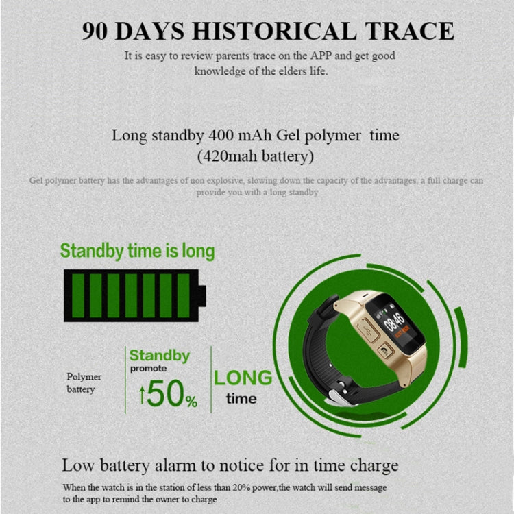 D99+ 1.22 inch HD LCD Screen GPS Smartwatch for the Elder Waterproof, Support GPS + LBS + WiFi Positioning / Two-way Dialing / Voice Monitoring / One-key First-aid / Wrist off Alarm / Safety Fence, D99+ Rose Gold