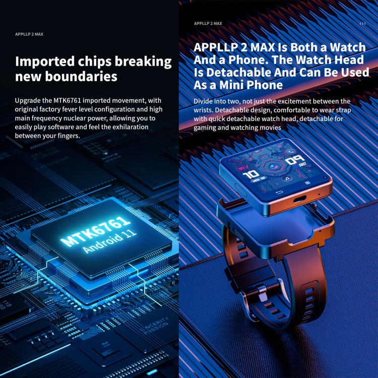 LOKMAT APPLLP 2 Max 4G Smart Watch, 2.64 inch MTK6761 Quad Core, 4GB+64GB, Android 11.0, GPS, Video Call