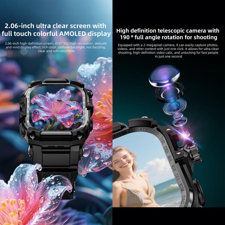 5. 2.06-inch AMOLED screen, Android 8.1 system, 3GB RAM + 32GB storage, retractable rotating camera, video calls, full network compatibility, multiple sports modes, 930mAh battery.