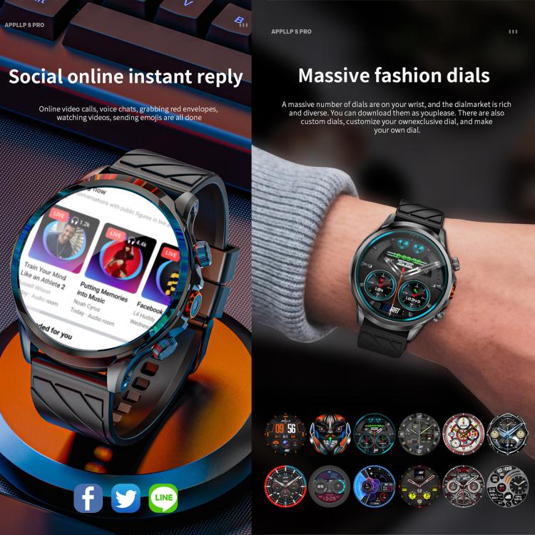 LOKMAT APPLLP 8 Pro 4G Smart Watch, 1.58 inch SC8541E Quad Core, 3GB+32GB, Android 8.1, GPS, Heart Rate