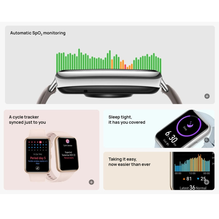 7. Support the replacement of 20mm EasyFit strap (pink/black/blue need to purchase HUAWEI WATCH FIT Link separately; white/grey already standard with link, can directly replace the strap)