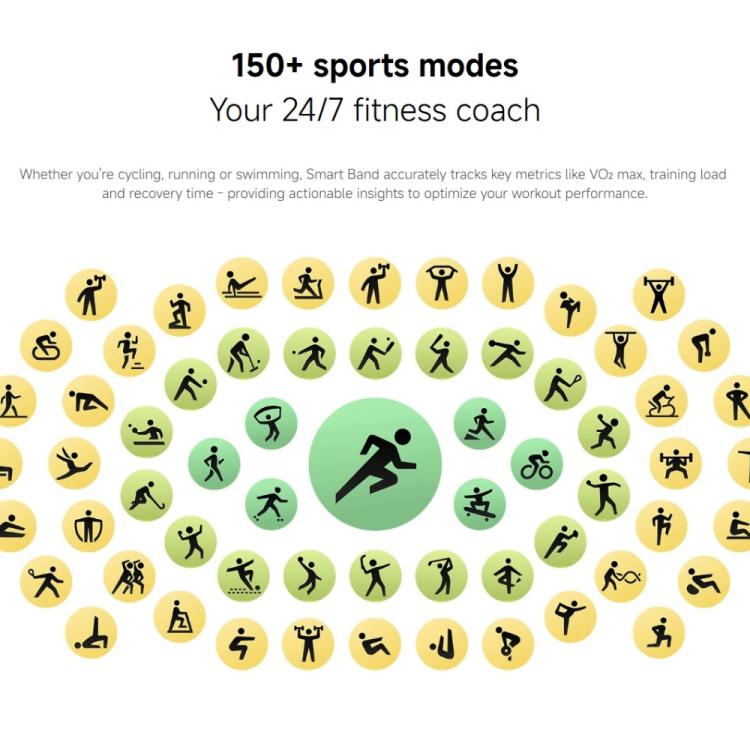 3. 150+ sports modes, from cycling, running, to indoor swimming, and dancing, can more accurately track various data, including maximum oxygen uptake, recovery time, training effect, training load and other advanced indicators.