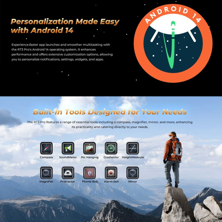 OUKITEL RT3 Pro 4G Network IP68/IP69K Rugged Tablet, 4GB+128GB, 8.0 inch Android 14 MediaTek G81 Octa-Core Support Dual SIM, EU Plug, RT3 Pro 4GB+128GB