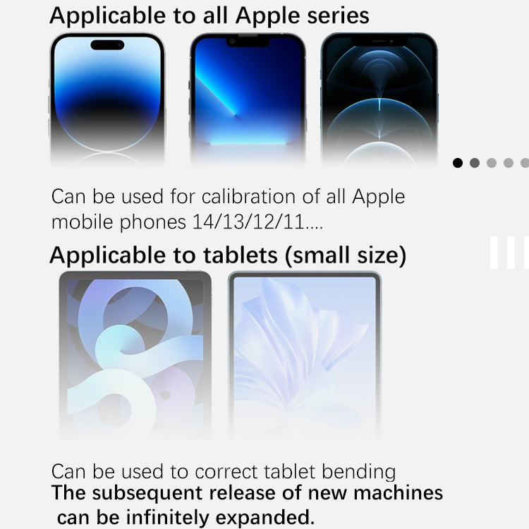 3. Applicable to tablets(small size), can be used to correct tablet bending, the subsequent release of new machines can be infinitely expanded