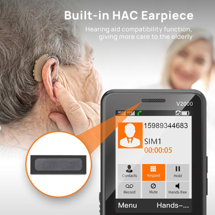 UNIWA V2000 Elder Keypad Phone, 2.4 inch Unisoc T107, 1700mAh Battery, LED Flashlight, SOS, Network: 4G, EU Plug, EU Plug