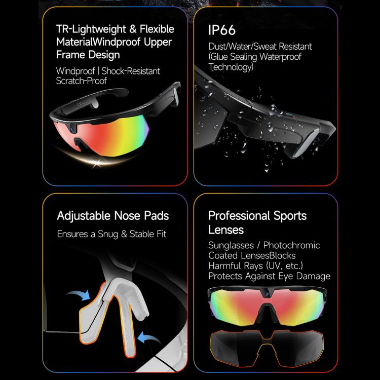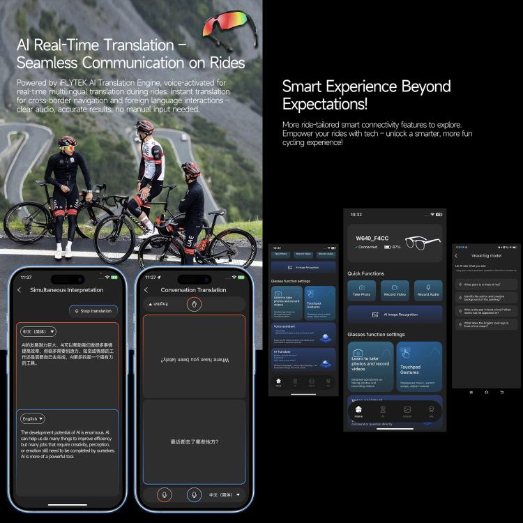 W640 8MP Cycling Smart AI Sports Glasses, Six-axis Image Stabilization, Wi-Fi, Touch Control, Dual Mic Noise Reduction, AI Translation